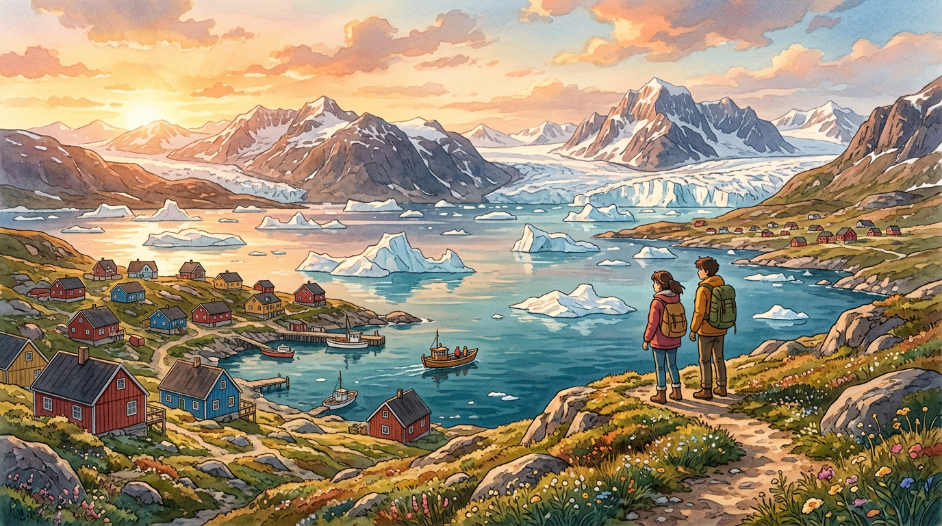 Known for the 'Stone & Man' open-air art project, this colorful town is the gateway to Norse ruins and the Uunartoq hot springs, where you can soak while watching icebergs drift by.
